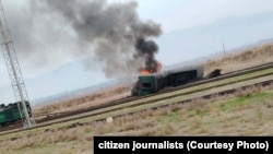Ба дасти Радиои Озодӣ чанд акс ва наворе расид, ки дар он дида мешавад, як қатор чаппа шуда, оташ гирифтааст.